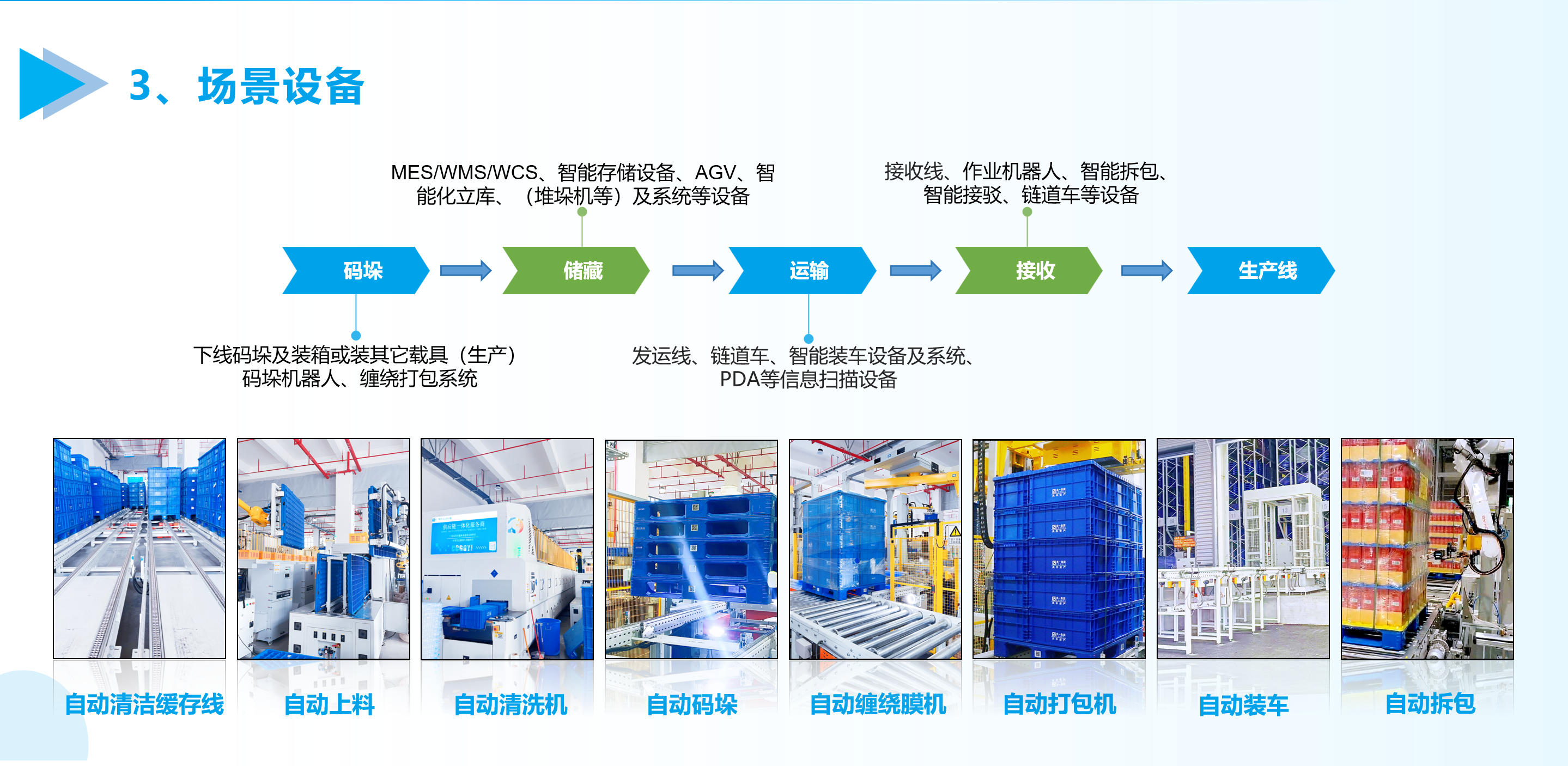 集团深谙客户需求,基于运输、仓储、生产物流场景,以载具为载体,提供量身定制的“自动码垛、自动装卸、自动拆包、自动清洗”等智能化设备,帮助企业实现标准化、自动化的生产流程,提升工厂各环节生产效率,驱动传统工厂设施设备到智慧工厂的升级。驱动传统工厂设施设备到智慧工厂的升级。